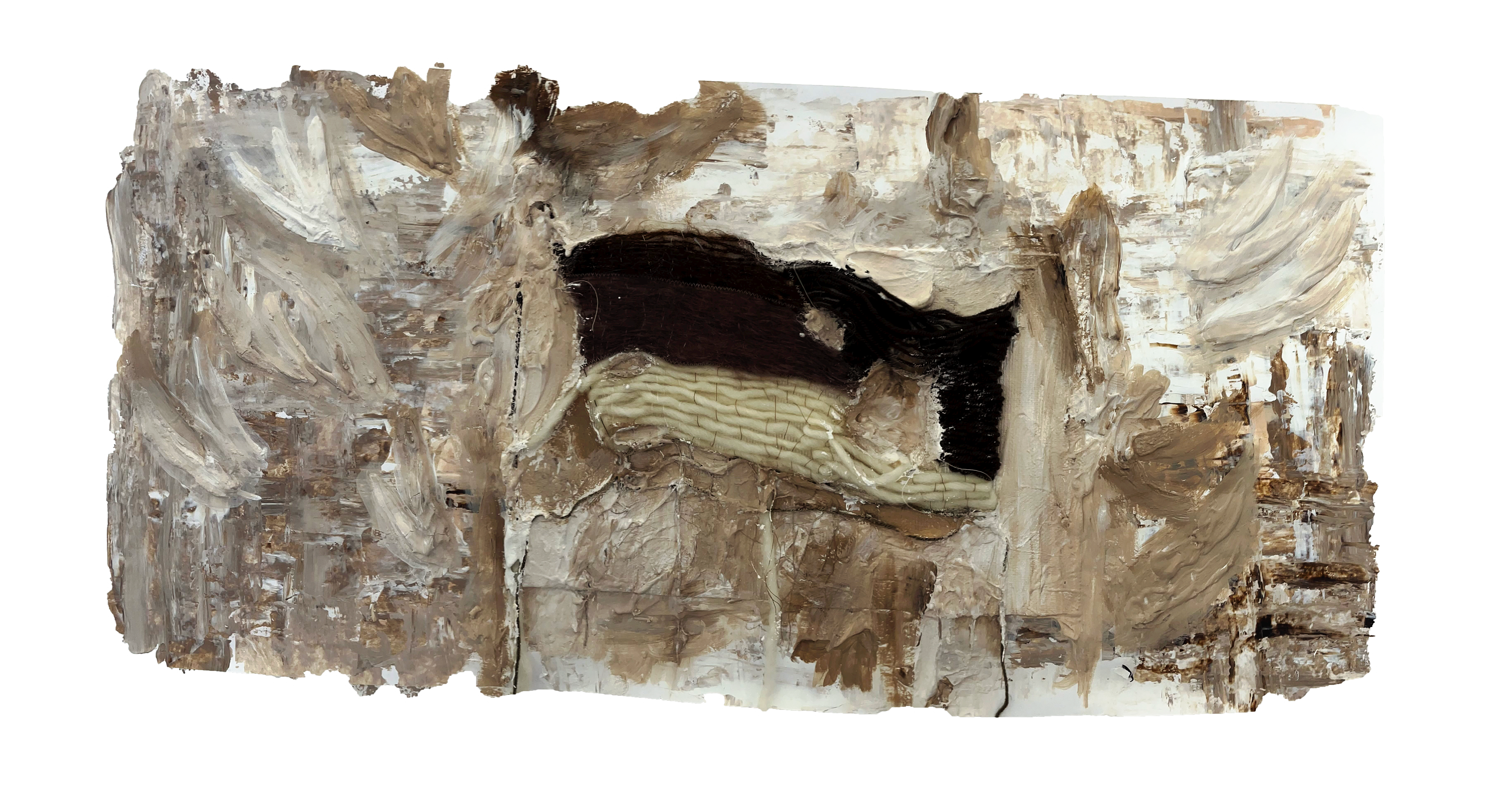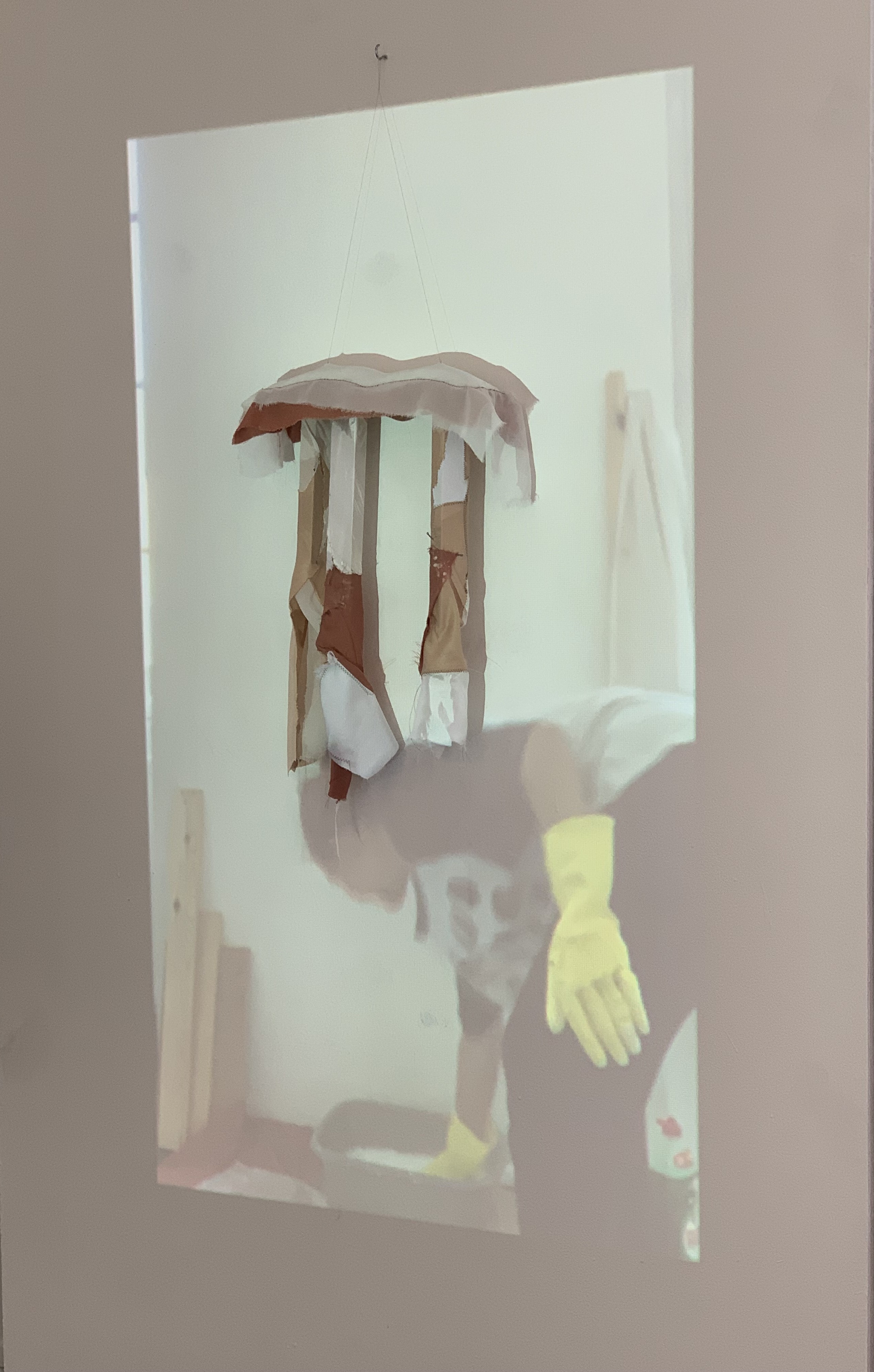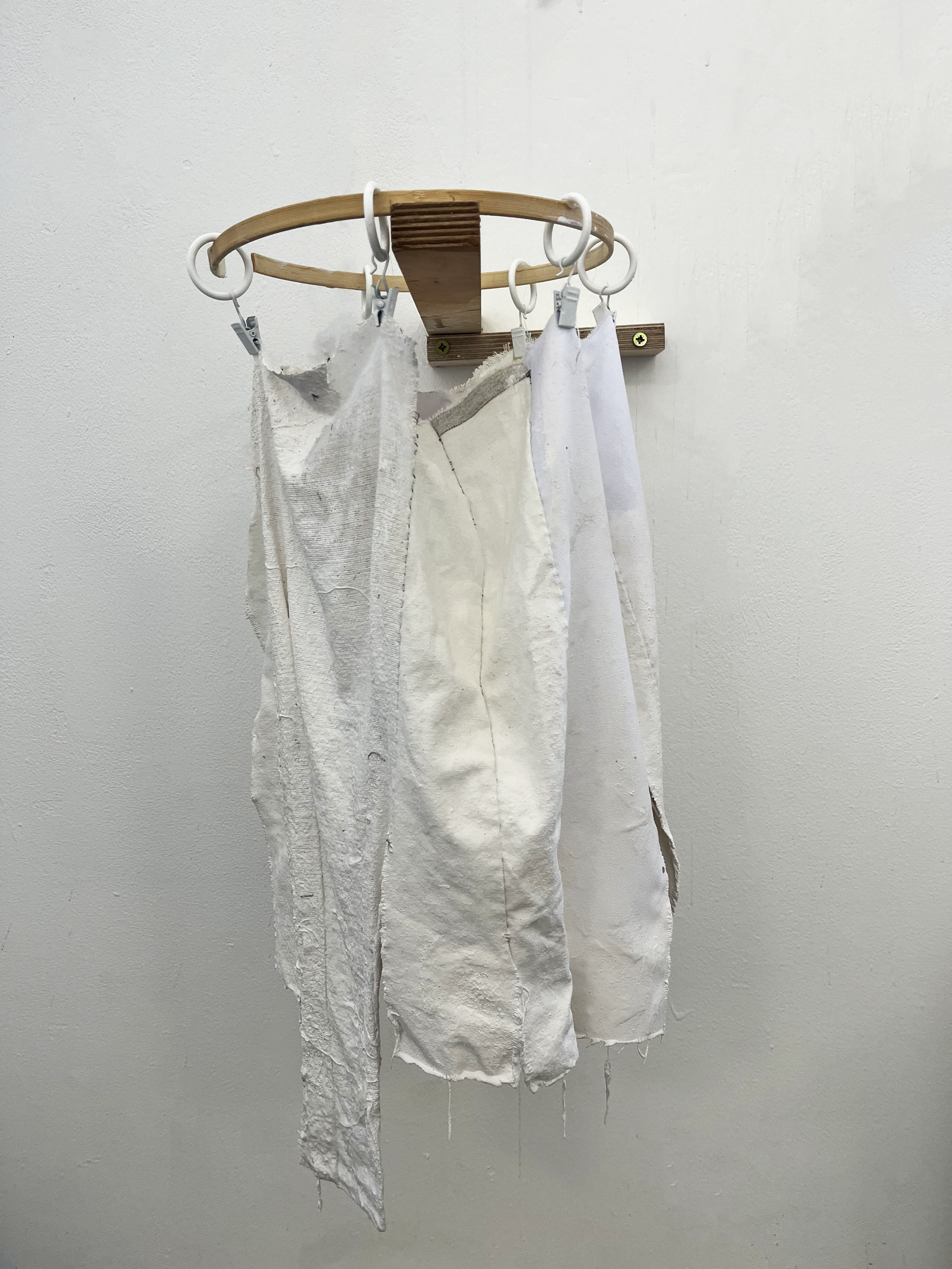 canvas, plaster, wood, curtain hoops, pegs ( 20 x 60 x 50 )